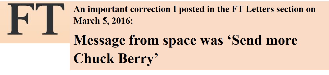 The joke was made in a skit on Saturday Night Live on April 22 1978, in which Martin’s character Cocuwa, a psychic, reported that the message received was “Send more Chuck Berry”. In either case, the message would indicate that beings of an advanced intelligence exist elsewhere in the universe.
