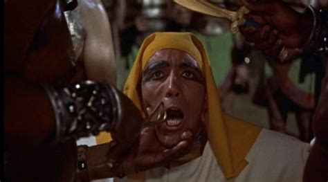 Still, the Hammer version has impressive moments of technicolor horror. The trailer doesn’t mind spoiling things a bit to ensure that potential viewers know there won’t be just the usual ineffective gunshots employed to bring Mummy down, but that we’ll have a Cushing/Lee moment involving a spear that penetrates and exits the wadding that encases the Mummy’s torso. (Further spoiler: the spear does not do the job either).