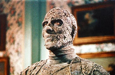 This means that Christopher Lee, unlike Karloff, is shown exclusively in mummy wraps, except for early in the film. Here he is before and after his mummy make-over: