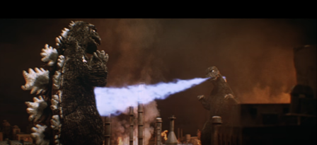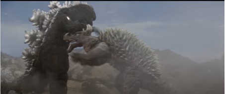 Godzilla’s rampage continues until another Godzilla (the real one) emerges and battles it.